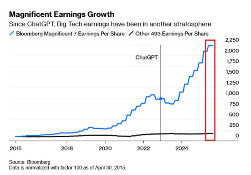 If I were a betting man (which I am!), I would say the pull back comes from left field and not because of AI. My hunch is it comes from somewhere else entirely, maybe government debt or another area where we’re already starting to see some dislocations in areas like Silver and Gold.
